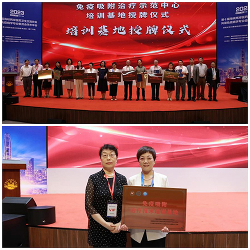 在免疫吸附治疗示范中心培训基地授牌仪式中,我院荣获全国第一批“免疫吸附治疗技术培训基地”的殊荣。